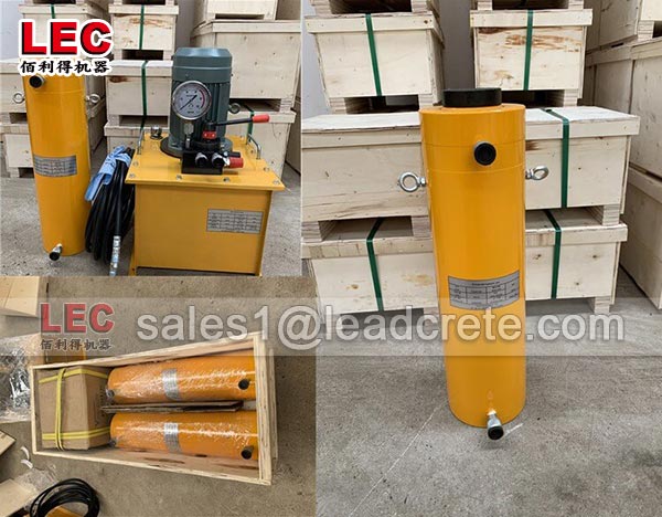 Leadcrete brand 400 ton double acting hydraulic cylinder jacks and electric oil pump for sale to. The tonnage of this hydraulic jack is 400 tons with 200mm stoke. Because our 400 ton double acting hydraulic cylinder jacks own have the follow advantages, it is accepted by many different customers. Double acting hydraulic jack is suitable for high-tonnage lifting operations, and requires high precision control of object lifting and maintenance operations.