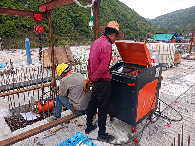 ④ After the steel bars are lapped, the intelligent stressed tension jack will be returned to the top, and the tool anchor and jack will be removed. The jacktop operator will measure and record the exposed amount of the work anchor clip, and plan to carry out the next two sets of steel beam tensioning.