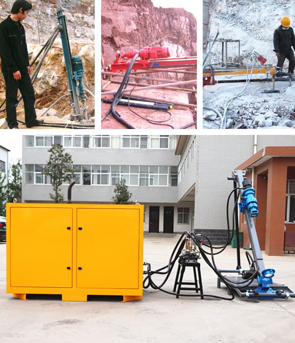 LPD100H-D/E DTH drilling rig is a portable hydraulic chain feed drilling rig, suitable for all light drilling operations, it is a new type of energy-saving and efficient drilling equipment. This borehole drilling rig is designed for easy installation on any type of scaffolding and is suitable for wall work. It is very light and convenient.