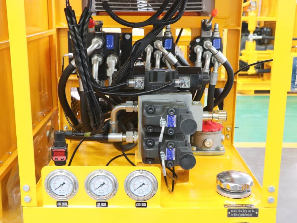 High speed vortex mixer ensures mix quickly and evenly. Water, cement or bentonite is quickly mixed into a homogeneous slurry. Then the mixed slurry was delivered to the agitator. Grout pump injects from the mixing drum (storage tank). This ensures a continuous mixing and grouting operations. The grouting plant is hydraulic drive with electric motor.